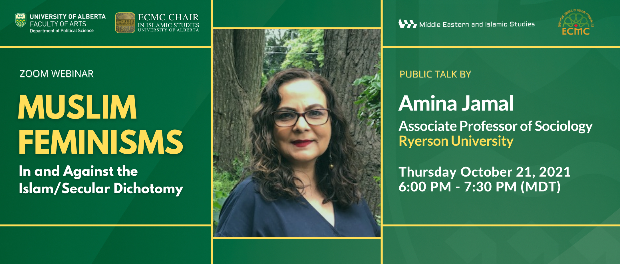October is Islamic History Month in Canada and you are cordially invited to this year’s lecture sponsored by the ECMC Chair in Islamic Studies, the Department of Political Science, Edmonton Council of Muslim Communities, and the Middle Eastern and Islamic Studies (MEIS) research group: