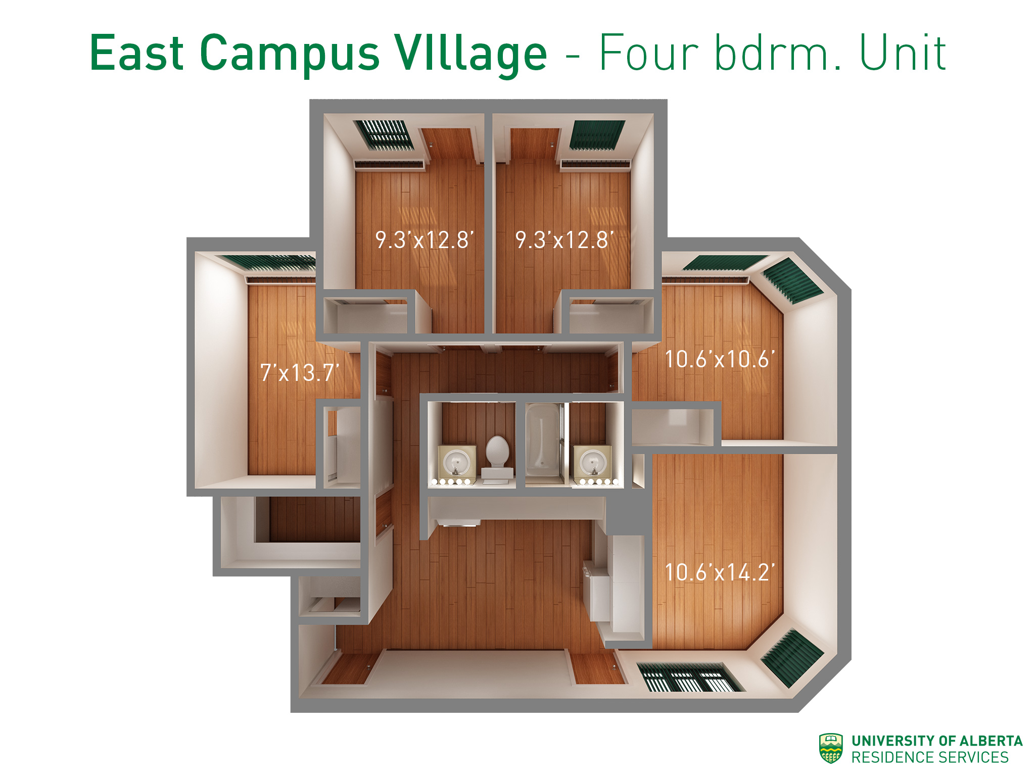 Residents have tons of support and services nearby including a centrally located and well established Students’ Association. They enjoy stepping out of their doors into an active community as much as stepping back inside to relax in their own space.