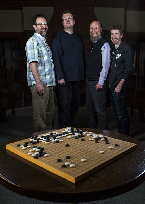 University of Alberta computing science professors (L-R) Ryan Hayward, Martin Mueller, Rich Sutton, and Michael Bowling from the Computer Games and Reinforcement Learning research groups, who supervised AlphaGo researchers David Silver, Aja Huang, and Marc Lanctot during their time at the University of Alberta.