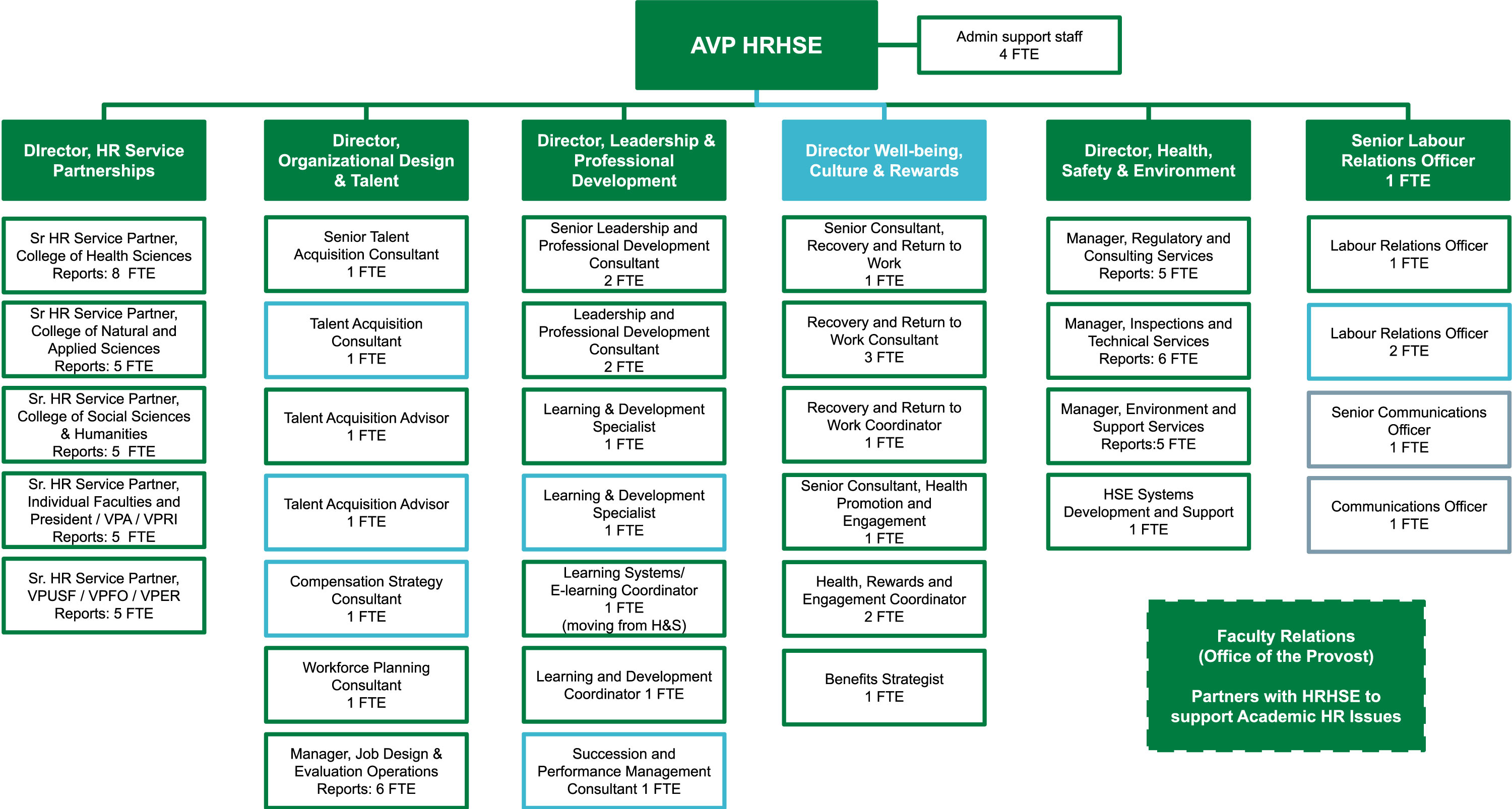 - Sr. HR Service Partner, Individual Faculties and President / VPA / VPRI. Reports: 5 FTE (existing position)